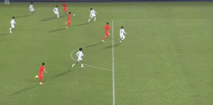 比赛时间是9月初的傍晚,我打开直播的时候,对阵东帝汶那场刚刚进行到第10分钟,比分已经是2比0。镜头一拉远,我们很容易就能看到一个画风:红色球衣牢牢压在对方半场,东帝汶那边几乎很难把球传过中线,守门员大脚解围成了最常见的画面。