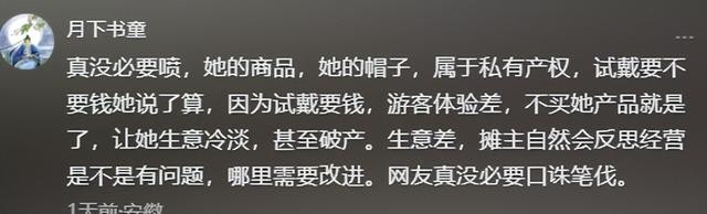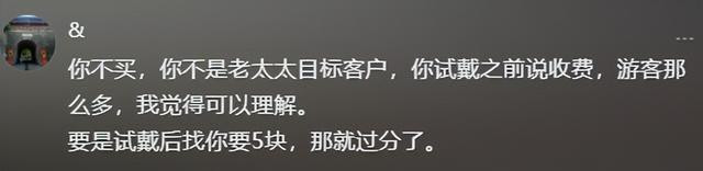 也有网友从消费透明度出发评论:“你试戴之前说收费,游客那么多,我觉得可以理解。要是试戴后找你要5块,那就过分了。”