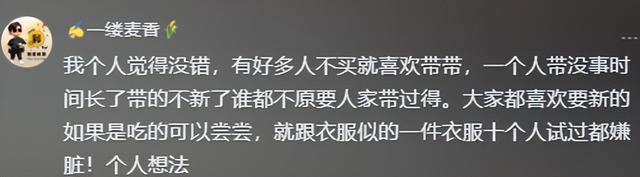 还有网友从卫生角度支持商户:“我个人觉得没错,有好多人不买就喜欢戴戴,一个人戴没事,时间长了戴得不新了,谁都不愿要人家戴过的。”